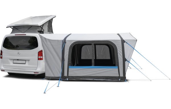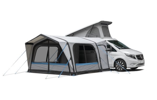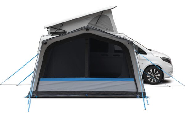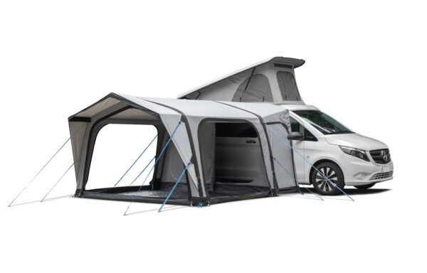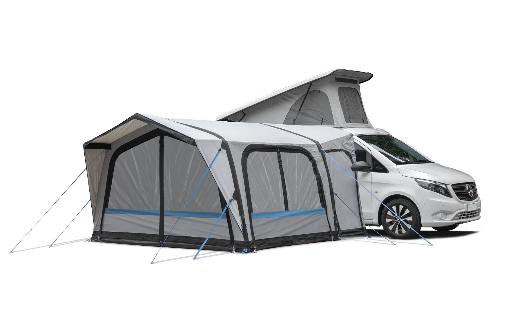 Prostostoječ napihljiv predprostor Wise je idealna rešitev za vse, ki želijo hitro postavitev, stabilnost in udobje. Dva nosilna loka in baldahin sta povezana z napihljivimi cevmi v strehi, kar omogoča izjemno hitro postavitev s sistemom Oneflate (ena točka za napihovanje). Vse štiri stene, vključno z zadnjo, so snemljive. Tri imajo mrežasta okna z zatemnjeno folijo in zatemnitvijo, sprednja pa vhod. Povsem všito dno zagotavlja dodatno stabilnost, zaščito pred vetrom, dežjem in insekti.